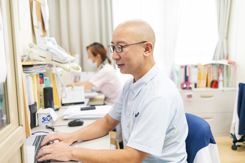 現在は、居宅介護支援事業所の管理者として、ケアマネジャーを務めつつ事業所運営にも携わっており、併せて経営企画室という部署で、施設全体の改善に向けた提案・実行の業務にも就いています。